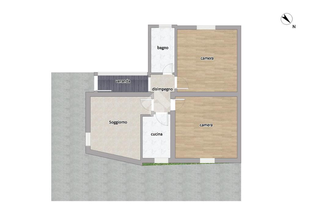 L'immobile si sviluppa su tre livelli. Al piano terra si sviluppano due camere da letto matrimoniali, il cucinotto, la sala da pranzo e un bagno.
