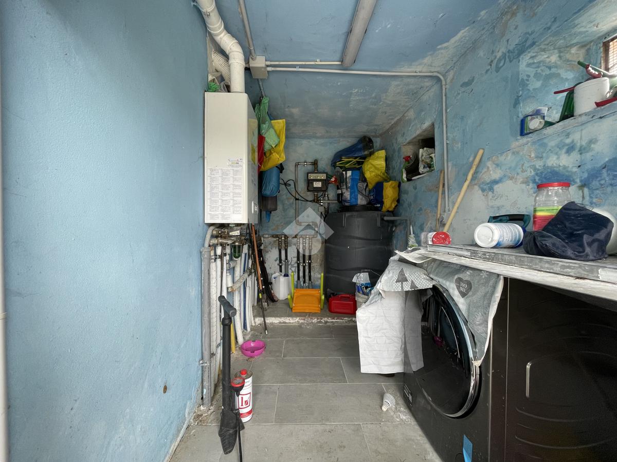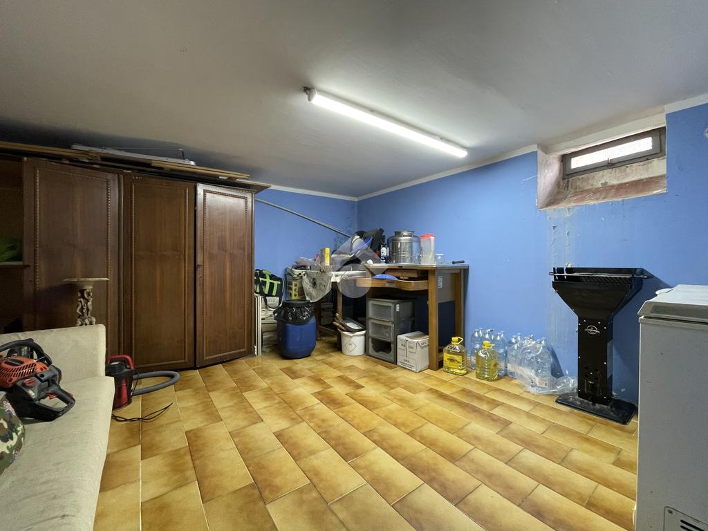 Scendendo tramite scala esterna si arriva alla terrazza abitabile, da questa si accede al piano inferiore dell'immobile, dove troviamo una sala e ampie cantine e il secondo servizio igienico.